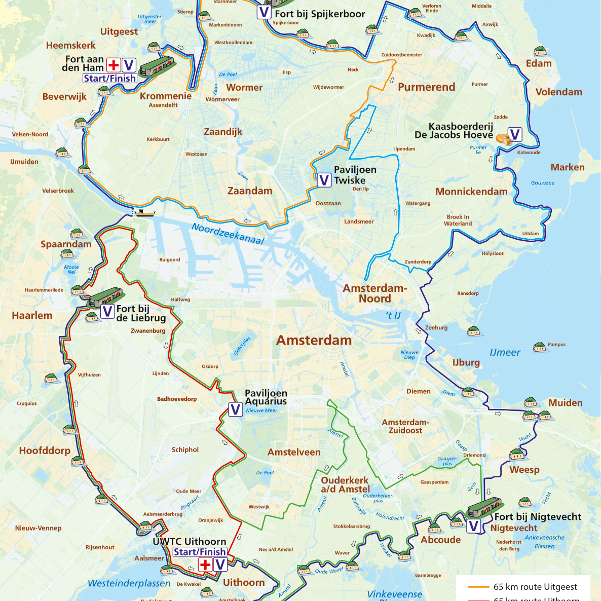 During a ride of 65, 120 or 170 km you will discover (a part of) the old defense line around Amsterdam, which was built to protect the capital in times of war. With an ingenious system, the land around the line could be inundated, which would make an enemy invasion of the capital impossible. An example of Dutch hydraulic engineering ingenuity, which has been on the Unesco World Heritage list for more than 25 years.